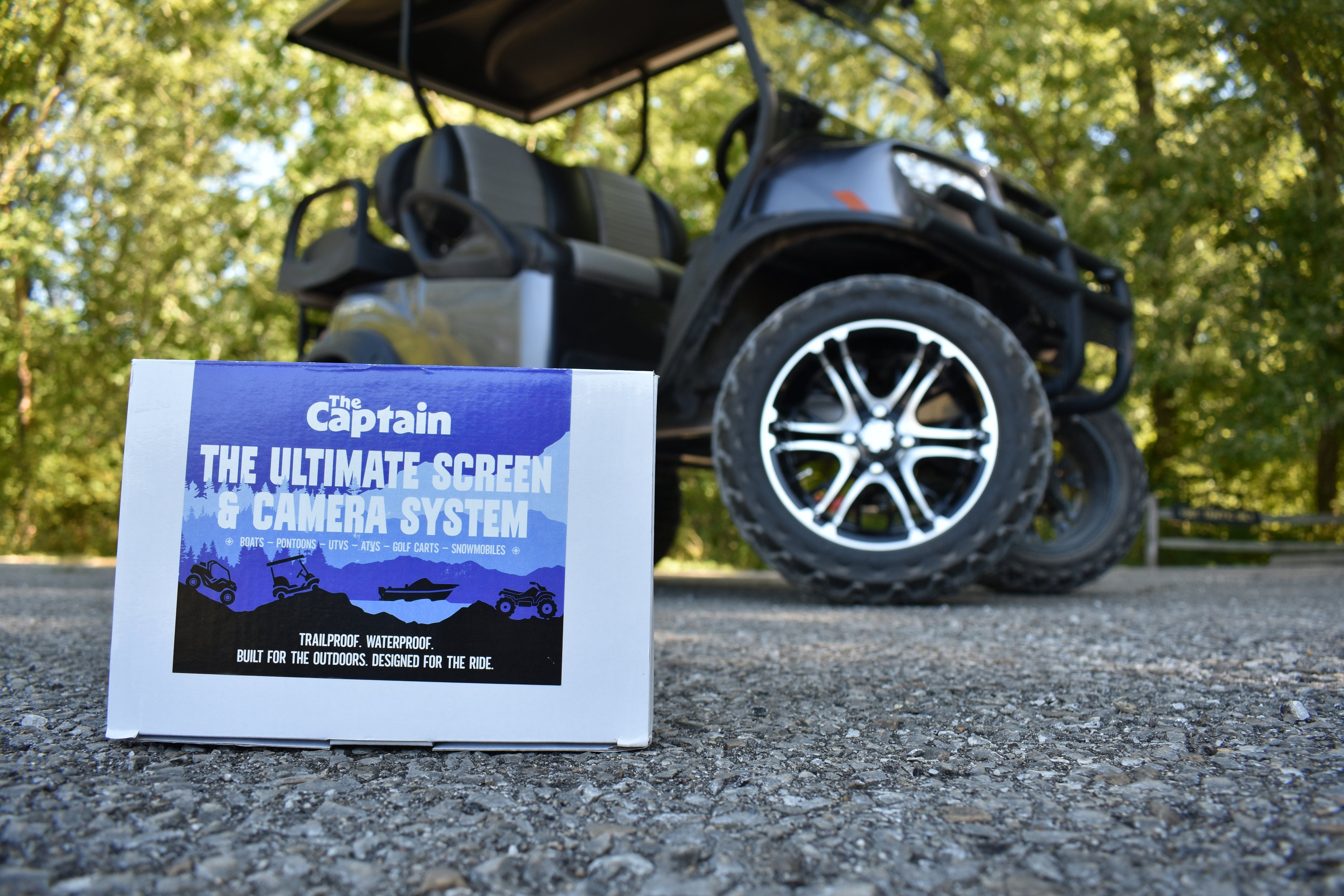 Built for Golf Carts, The Captain gives you full visibility, navigation, and connectivity wherever your adventure leads—on the trail, in the neighborhood, or down to the beach.